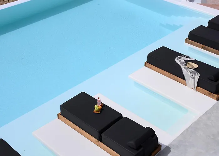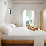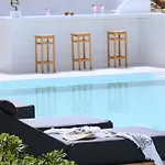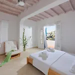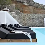 Villa Crysta Mykonos提供住宿,设有私人游泳池和大厨房。 在露台上可以欣赏到大海美景。